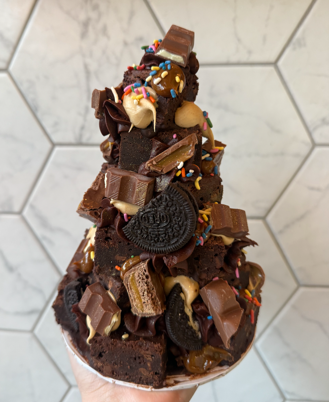 Brownie towers are the perfect party show piece which everyone can enjoy, you can choose your baked base, then the spreads and toppings