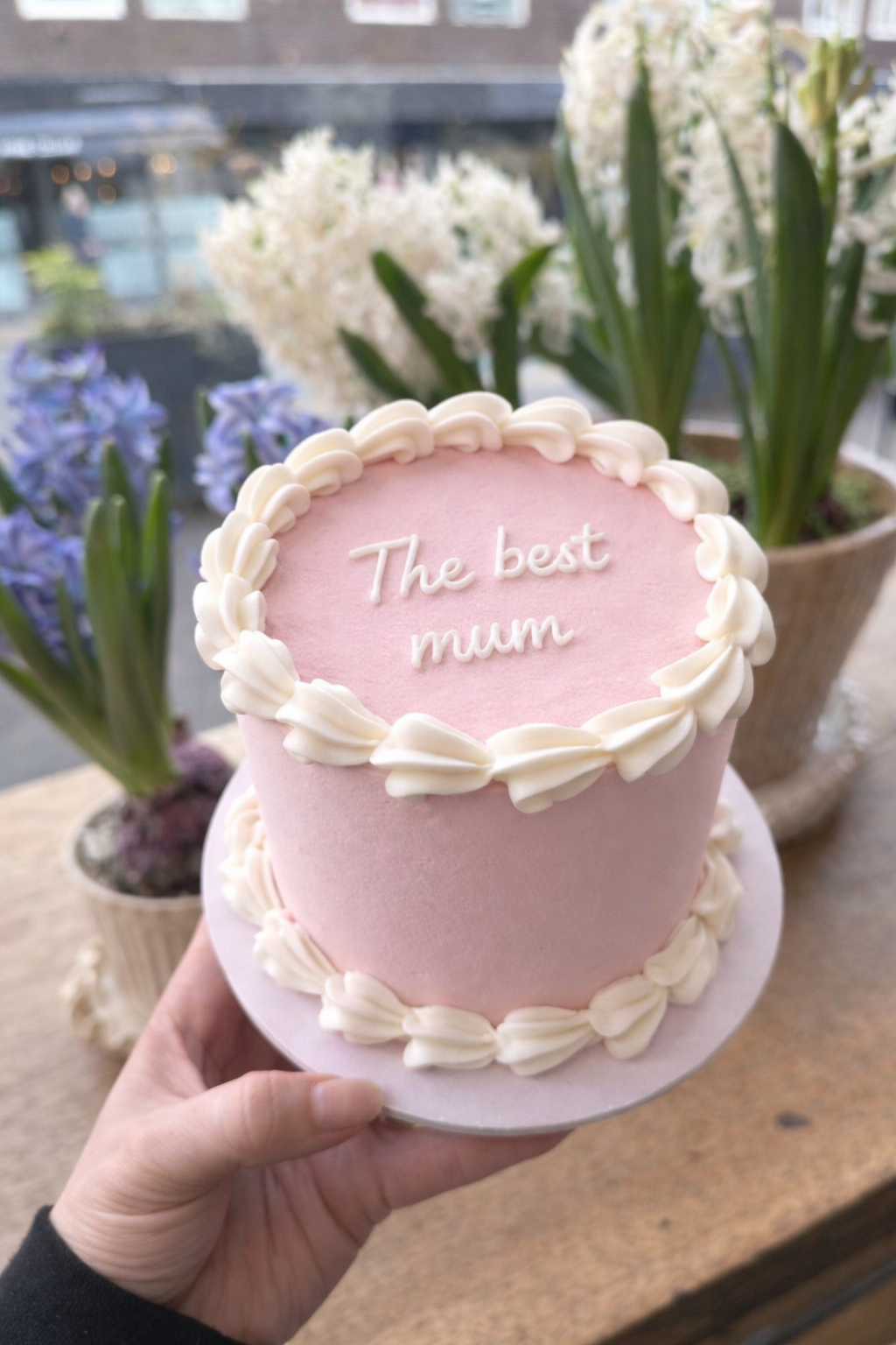 It features a smooth pastel pink base, elegant white piping plus, your own custom message on top to make it truly personal! 💌🌸