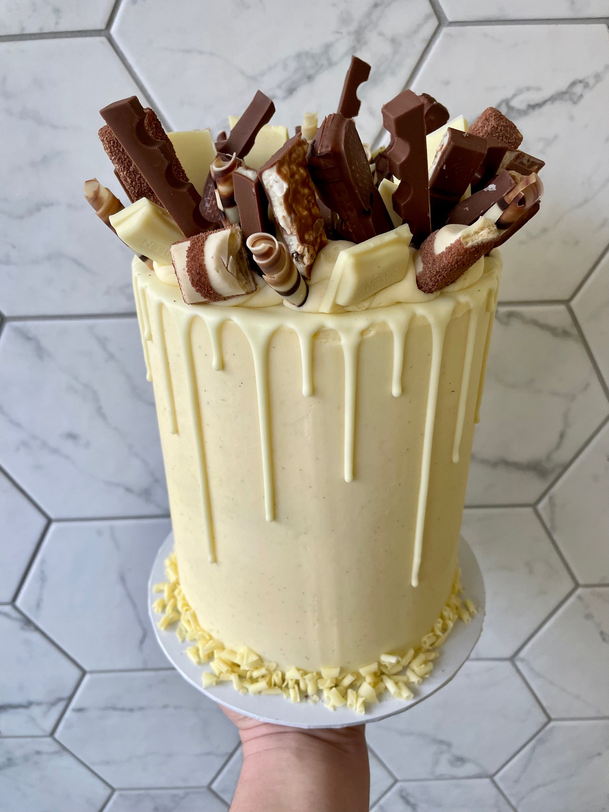 Custom design your fully loaded cake. Please specify if there's certain toppings you'd like, otherwise we will load it up with different chocolates or fruits to match your filling choice.