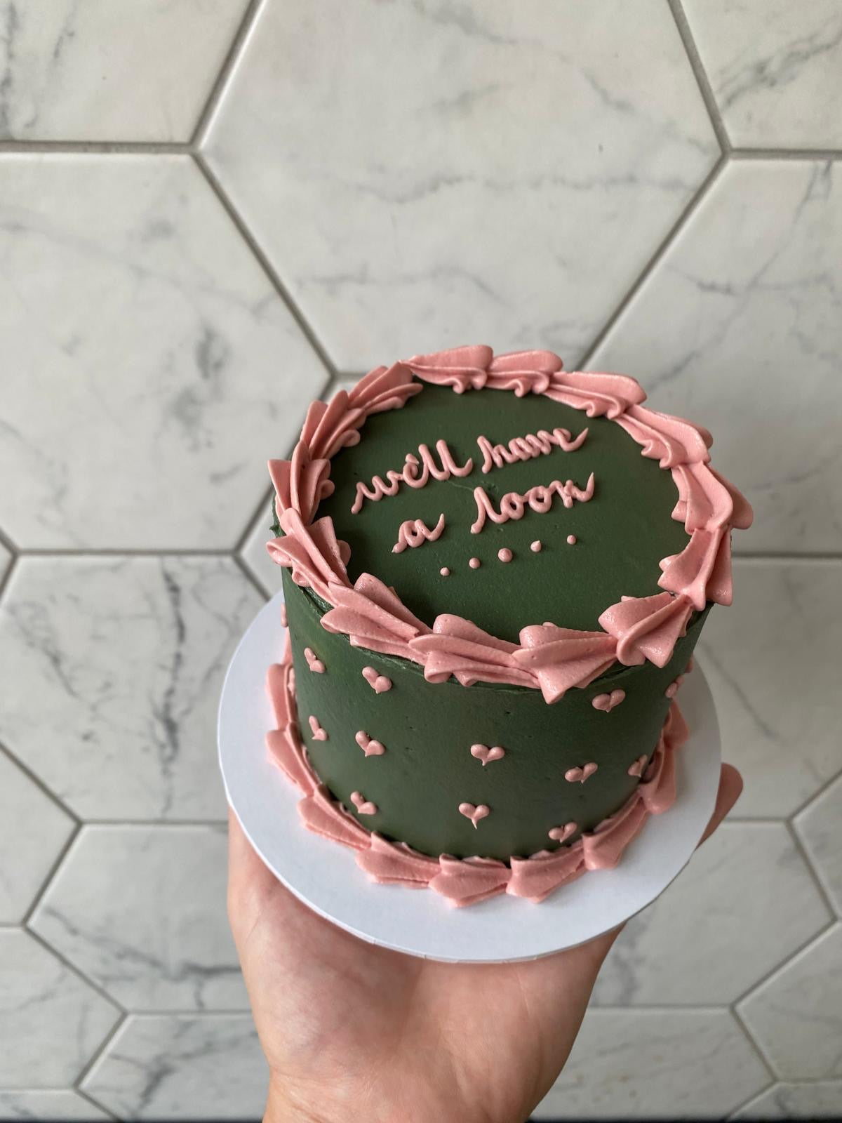 Choose your sponge base base, filling and we will add your choice of piping message on top along with the icing colour.